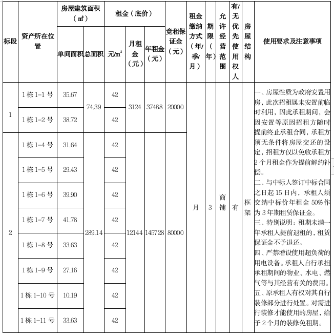 一、招租资产的基本情况 :